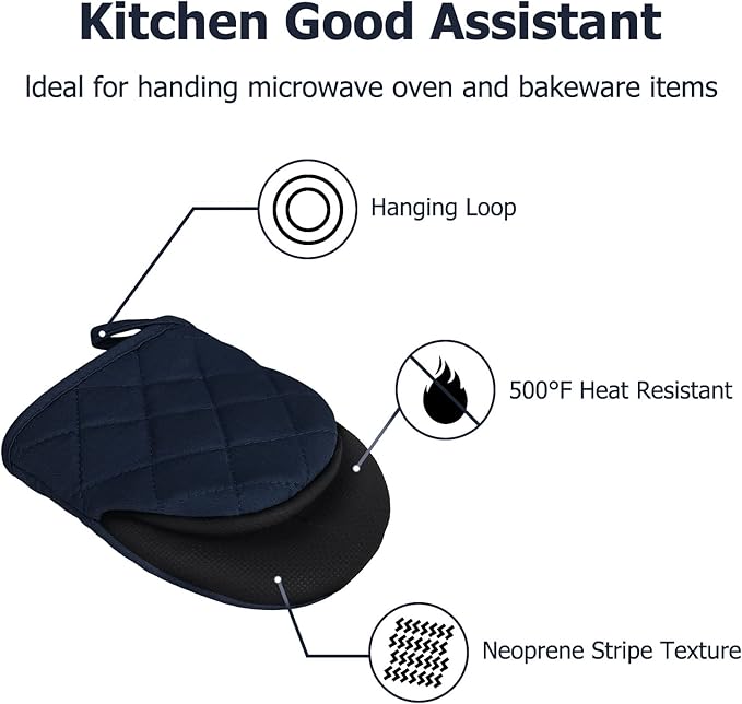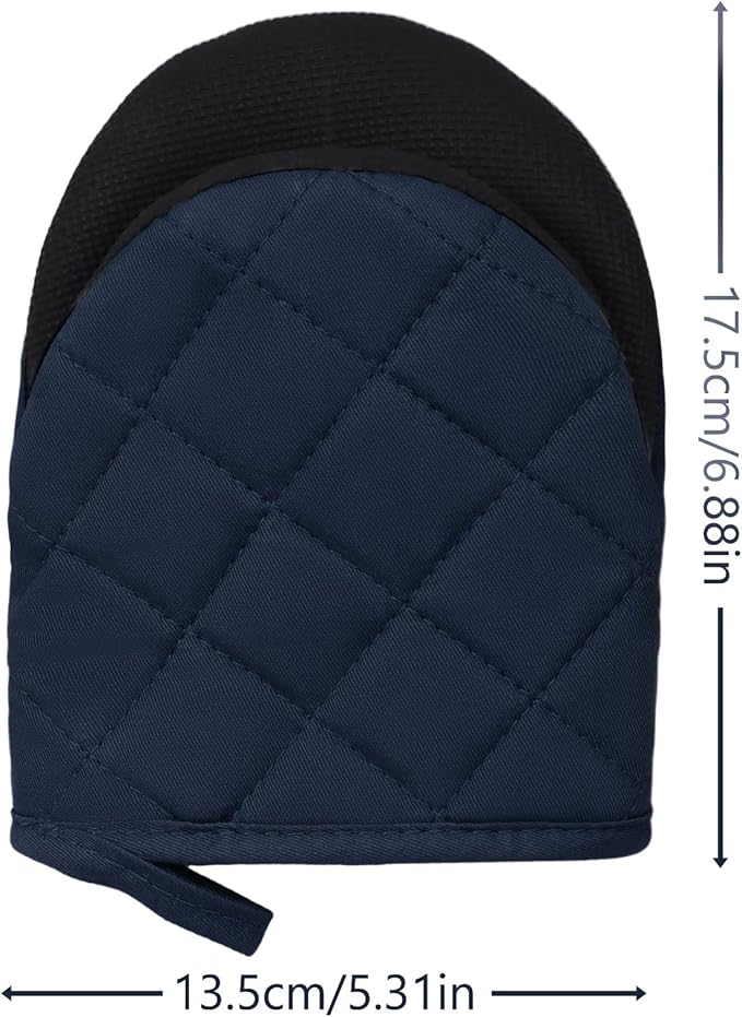 1 Pair Short Oven Mitts, Heat Resistant Silicone Kitchen Mini Oven Mitts for 500 Degrees, Non-Slip Grip Surfaces and Hanging Loop Gloves, Baking Grilling Barbecue Microwave Machine Washable