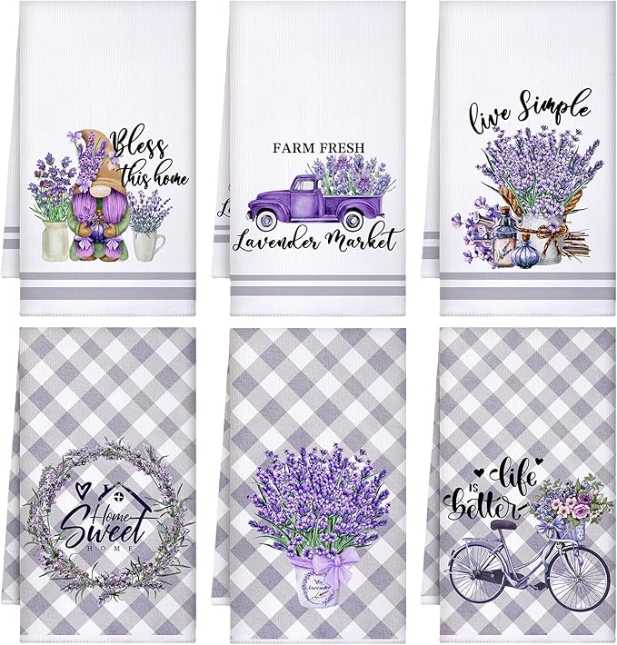 About This Microfiber What You Get: you will receive a total of 6 different styles of lavender themed kitchen towels,... Read more