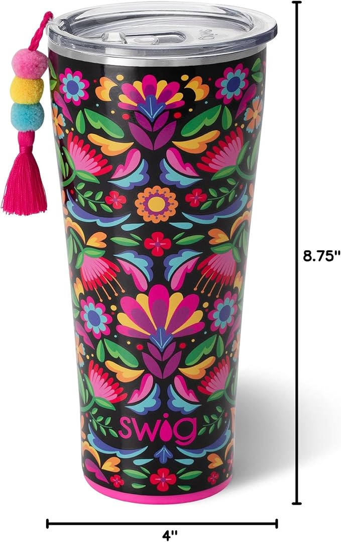 Swig Life 32oz Insulated Tumbler, Travel Coffee Tumbler with Lid, Cup Holder Friendly Travel Coffee Mug, Stainless Steel with Lid (Caliente)