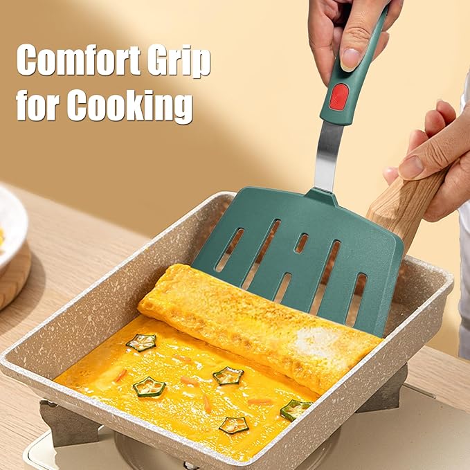 Silicone Spatula Turner, Omelette Egg Spatula Heat Resistant, Extra Wide Slotted Spatula for Cooking, Pancake Fish Spatulas Flipper for Nonstick Cookware Pan 600°F for Kitchen Use (Green)