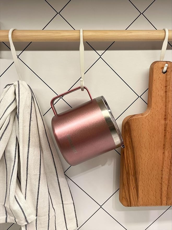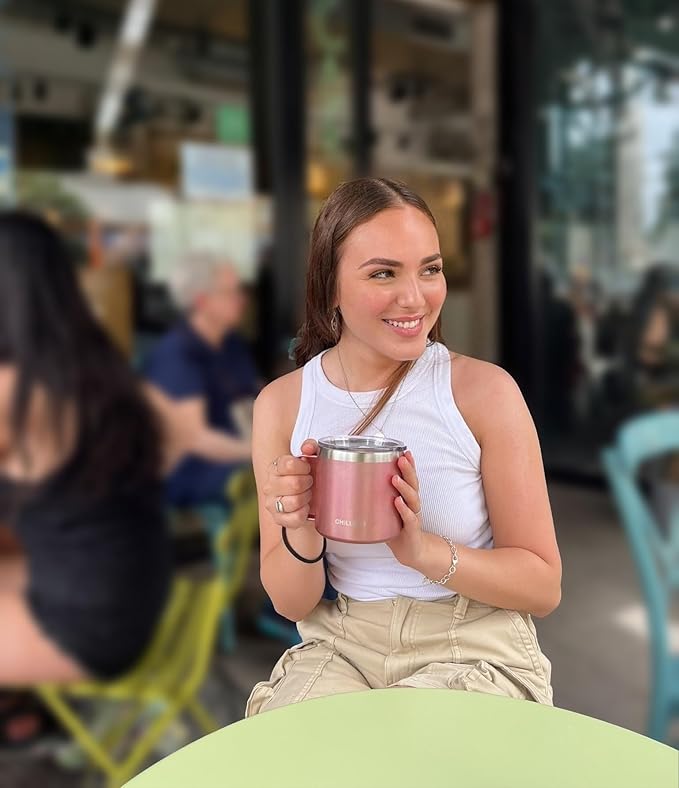 CHILLOUT LIFE Stainless Steel 16 oz - Vacuum Insulated Coffee Mug with Handle and Lid, Large Thermal Camping Coffee Mug Cup with Durable Sliding Lid for Women - Rose Gold