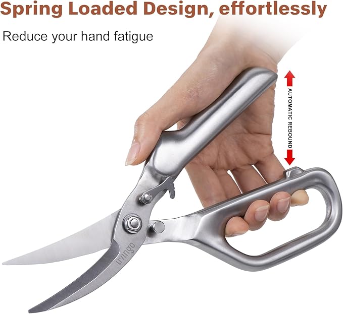 LIVINGO Kitchen Scissors - Heavy Duty Poultry Shears Sharp Cutting Food Chicken Bone Meat Vegetable for Cooking, Multipurpose Stainless Steel Utility Scissors, Safety Lock