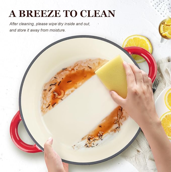 Overmont 5.5QT Enameled Cast Iron Dutch Oven with Lid Cookbook Heavy-Duty Casserole with Dual handles for Braising, Stews, Roasting, Bread Baking