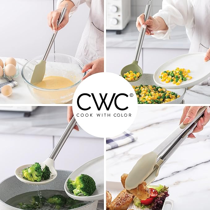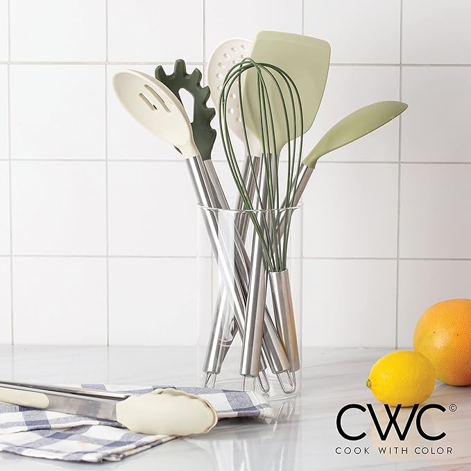 COOK WITH COLOR Silicone Cooking Utensils, Kitchen Utensil Set, Easy to Clean Silicone Kitchen Utensils, Cooking Utensils for Nonstick Cookware, Kitchen Gadgets Set, 10 Pieces, Green