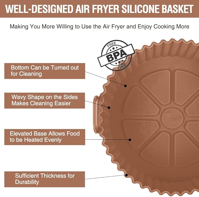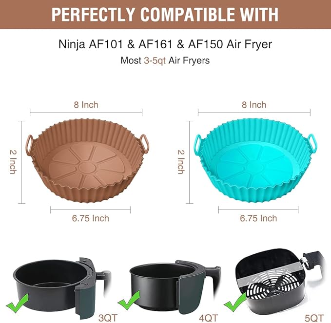 Air Fryer Silicone Liners for Ninja Air Fryer AF101 4 QT AF150 AF161 5.5 QT MAX XL, for COSORI/Gourmia/PowerXL/InstantPot/Philips 4QT and Most 3 to 5 QT Airfryers, Better than Parchment Paper Liners