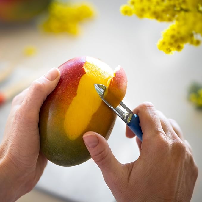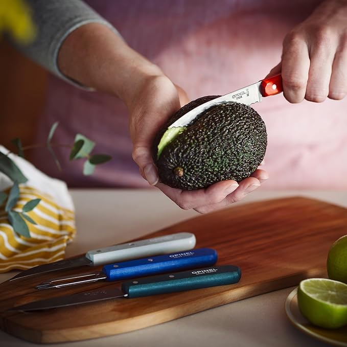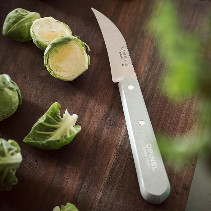 OPINEL Les Essentials - Small Kitchen 4 Piece Set - Paring, Serrated, Vegetable Knife, Peeler - Corrosion Resistant High Carbon Steel - Made in France (Primo)