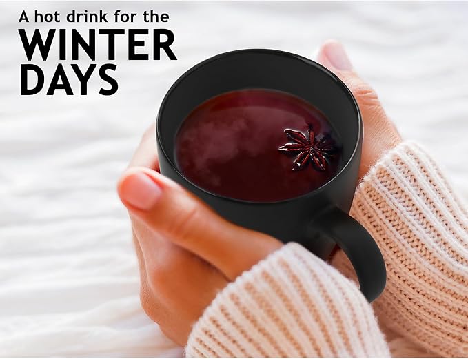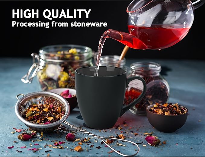 MIAMIO - Set of 6 Stoneware Coffee Mugs 12 Ounce/Cup Set - Le Papillon Collection (Black)