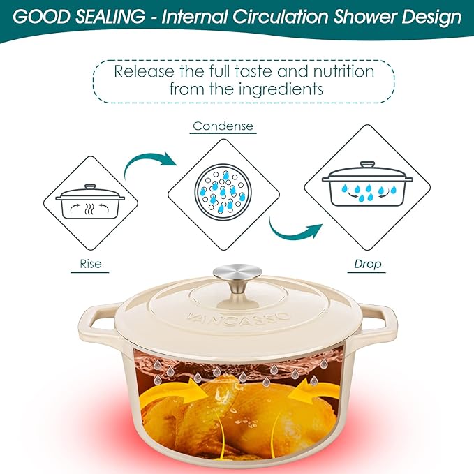 About This 【ONE POT FOR MULTIPLE USE - Suitable for Families of 3-5 People】This 6-Quart vancasso enameled cast iron dutch... Read more