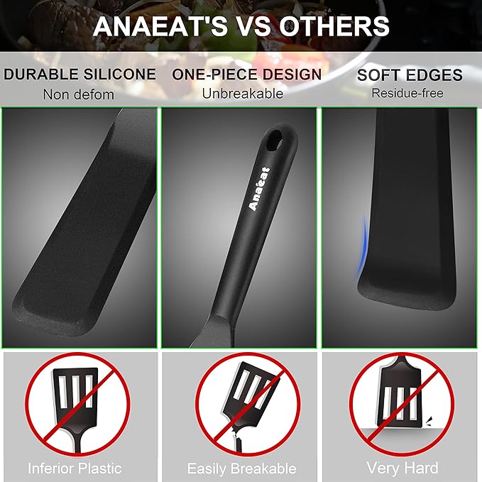 Anaeat Silicone Thin Spatula Set of 2 - Mini Brownie Serving Spatulas - Non Stick Spurtle Turner for Easy Cooking Eggs, Omelet, Pancake, Burgers, Pizza, Steak, Crepes, Heat Resistant & BPA Free