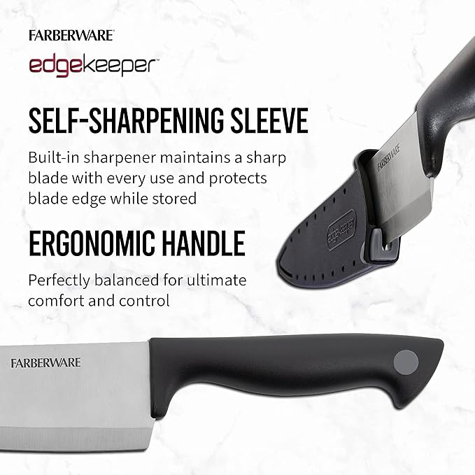 Farberware Edgekeeper 8-Inch Chef Knife with Self-Sharpening Blade Cover, High Carbon-Stainless Steel Kitchen Knife with Ergonomic Handle, Razor-Sharp Knife, Black