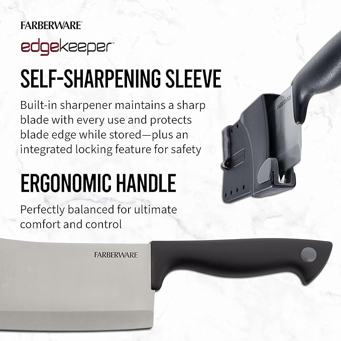 Farberware Edgekeeper 6-Inch Cleaver Knife with Self-Sharpening Blade Cover, High Carbon-Stainless Steel Kitchen Knife with Ergonomic Handle, Razor-Sharp Knife, Black