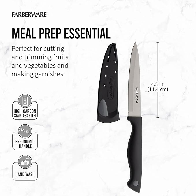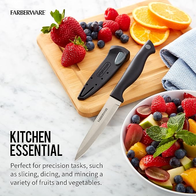 About This CUTLERY ESSENTIAL: This Farberware 4-1/2 inch Utility Knife with a sharpening blade cover is essential for everyday food... Read more