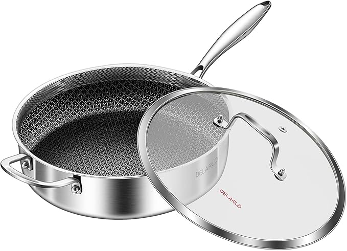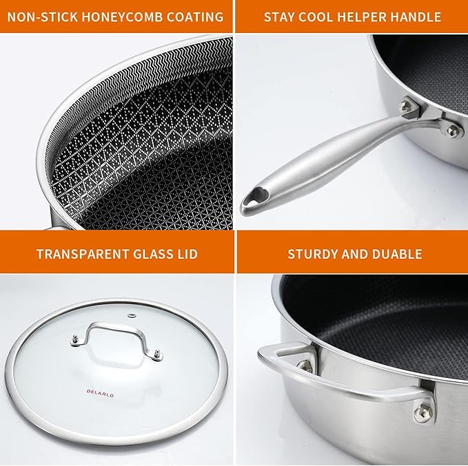 About This 【HEALTHY MATERIAL】DELARLO Saute Pan are made up of high-quality stainless steel, which is highly durable, corrosion-resistant, and does... Read more