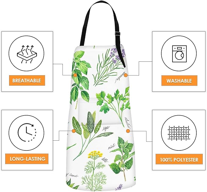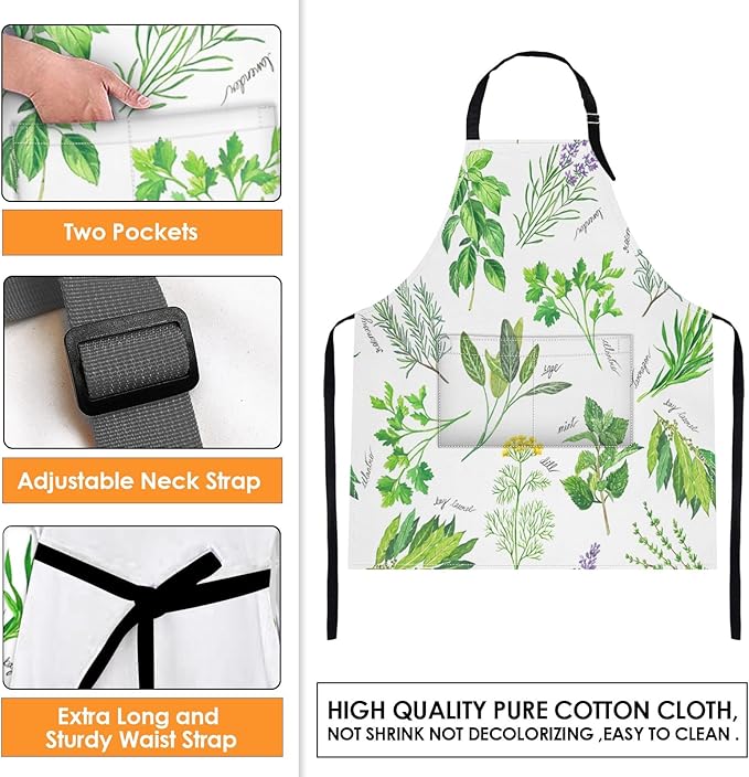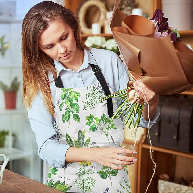 Britimes Apron Home Kitchen Cooking Baking Gardening for Women Men With Pockets Herbs Leaf Natural Gardening Basil 32x28 inch