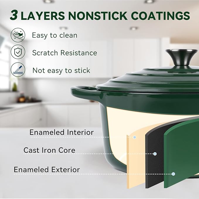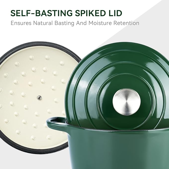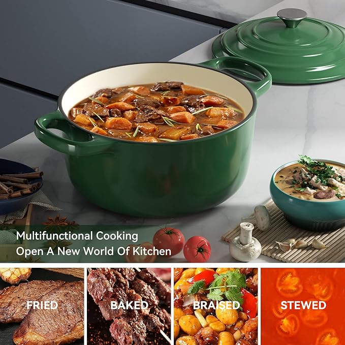 Miereirl 6 Quart Enameled Dutch Oven Pot with Lid, Cast Iron Dutch Oven with Dual Handles for Bread Baking, Cooking, Non-stick Enamel Coated Cookware (Green)