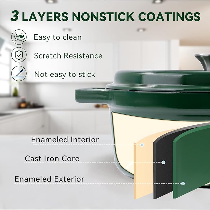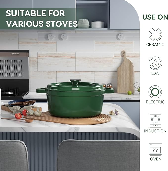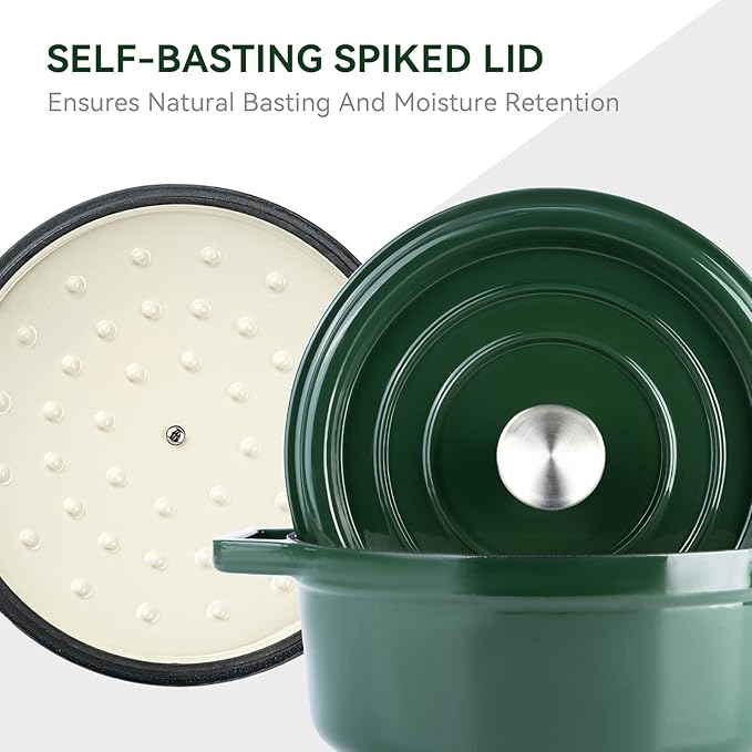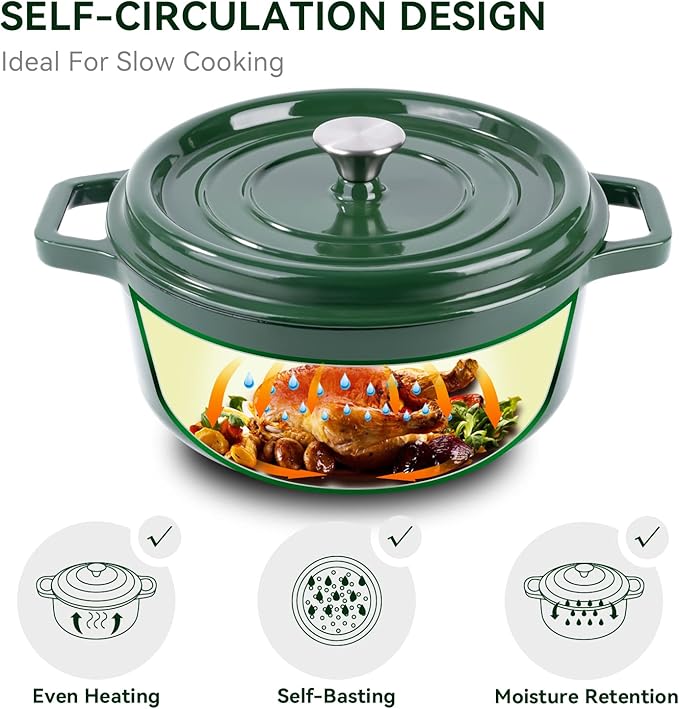 Miereirl 6.5 Quart Enameled Dutch Oven Pot with Lid, Cast Iron Dutch Oven with Dual Handles for Bread Baking, Cooking, Non-stick Enamel Coated Cookware (Green)