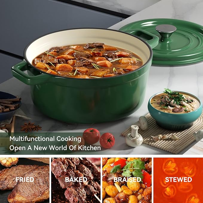 About This 🍳LARGE 6.5 Quart CAPACITY:Our cast iron dutch oven can be used for multiple cooking methods such a cooking,... Read more