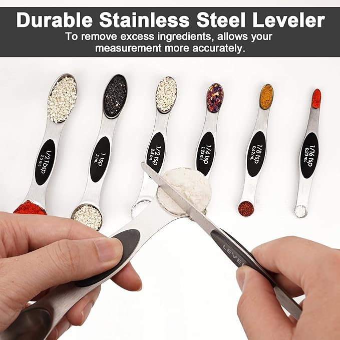 Aovchei 8 PCS Magnetic Measuring Spoons Set, Dual Sided, Stainless Steel Small Tablespoon, Teaspoons, Fits in Spice Jars, for Dry and Liquid, Black