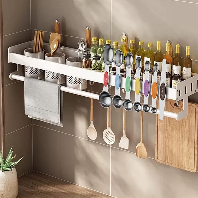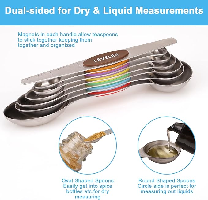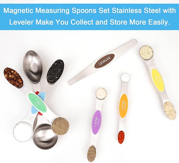 Aovchei 7 PCS Magnetic Measuring Spoons Set, Dual Sided, Stainless Steel Small Tablespoon, Teaspoons, Fits in Spice Jars, for Dry and Liquid, MultiColor
