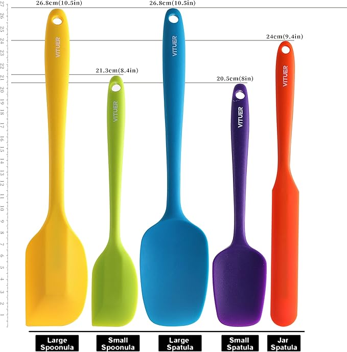5PCS Silicone Rubber Spatula Set, VITUER Food Grade BPA-Free Spatulas for kitchen Use, Heat Resistant Spatula for Cooking & Baking, Dishwasher Safe