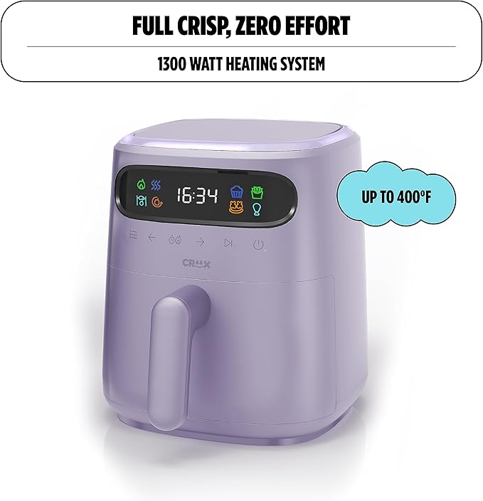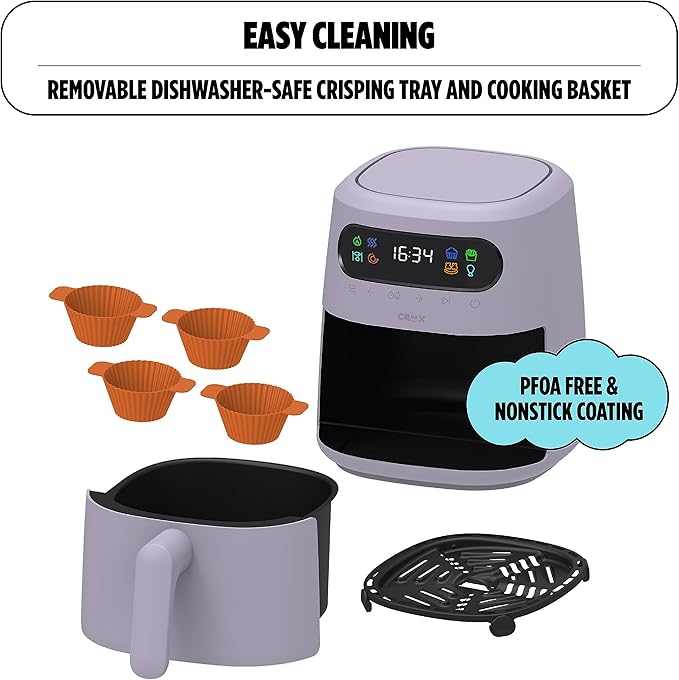 CRUX x Marshmello 3.0 QT Digital Air Fryer with TurboCrisp Technology, Touch Screen Temperature Control, Timer and Auto Shut-off, Fully Programmable, Silicone Cupcake Molds Included, Lavender