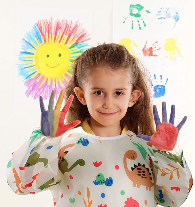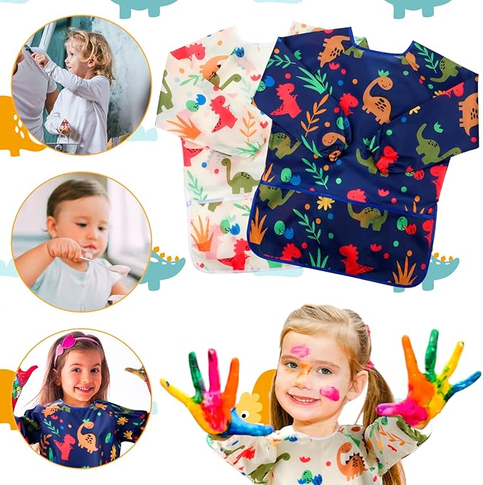 CUBACO Kids Painting Apron, 2pcs Waterproof Art Smocks For Child 3-8 Years, Kids Smocks for Painting Aprons with Long Sleeve