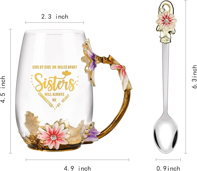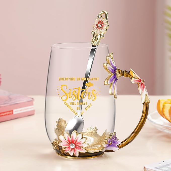 OEAGO Sisters Gifts from Sister for Women Elegant Tea Cup Unique Christmas Birthday Gifts for Sister, Little,Big,in Law