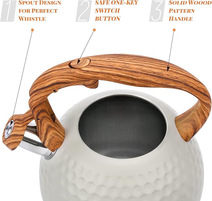 Tea pot, 3.2Qt Whistling Tea Kettle Stovetop, Convenient switch/heat-resistant handle, coffee, tea, milk teapots, Gas Electric Applicable (cream)