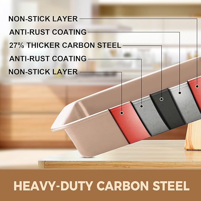 HONGBAKE Bakeware Sets, Baking Pans Set, Nonstick Oven Pan for Kitchen with Wider Grips, 10-Piece Including Rack, Cookie Sheet, Cake Pans, Loaf Pan, Muffin Pan, Pizza Pan - Champagne Gold