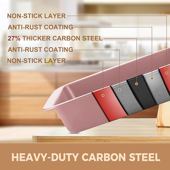 HONGBAKE Bakeware Sets, Baking Pans Set, Nonstick Oven Pan for Kitchen with Wider Grips, 10-Piece Including Rack, Cookie Sheet, Cake Pans, Loaf Pan, Muffin Pan, Pizza Pan - Pink