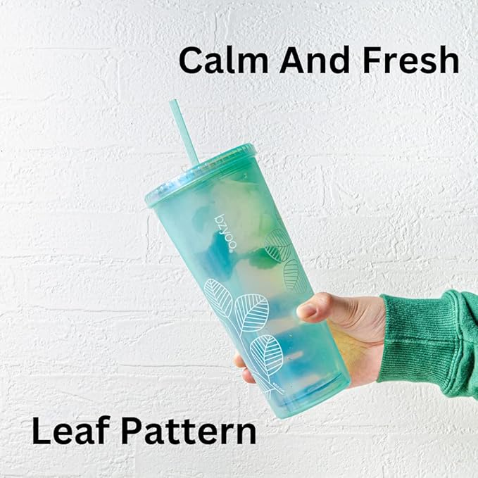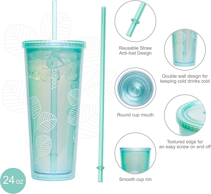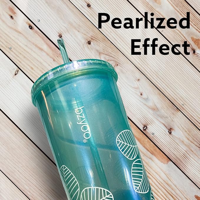 bzyoo SIP 24oz (710ml) Double Wall Plastic Tumbler with Lid and Straw Cold Drink Travel Mug Reusable Ice Coffee Tea Cup Perfect for Office Poolside Parties Gifts Color: Pearl Green