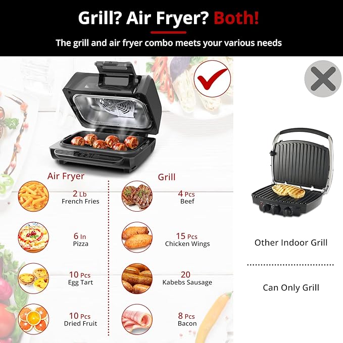About This Indoor Grill Air Fryer Combo: This air grill is the ultimate cooking machine, offering 7 preset settings for... Read more