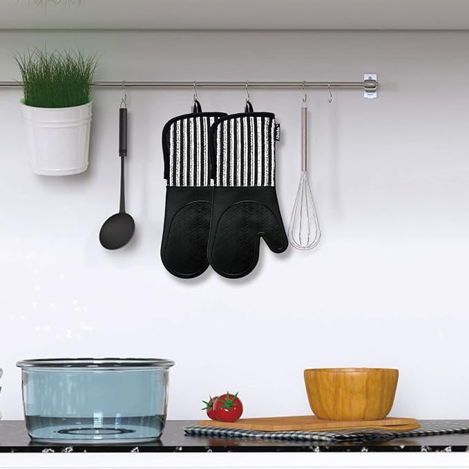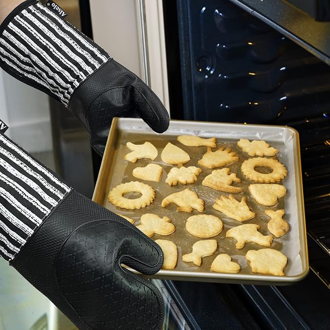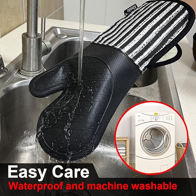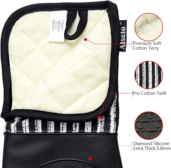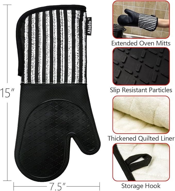 About This 1.EXTRA-LONG LENGTH WITH UNIQUE DESIGN: Alselo kitchen oven mitts with 15-inch length, are widely used for cooking, barbecue,... Read more