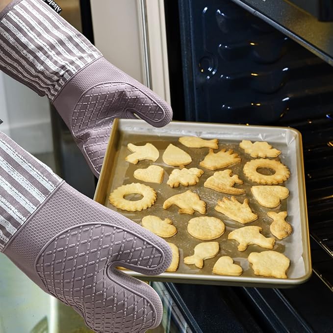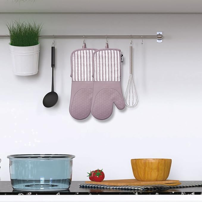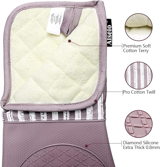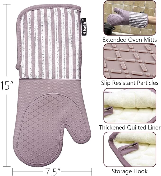 About This 1.EXTRA-LONG LENGTH WITH UNIQUE DESIGN: Alselo kitchen oven mitts with 15-inch length, are widely used for cooking, barbecue,... Read more