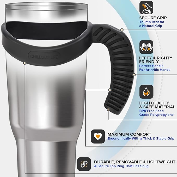 CHILLOUT LIFE Stainless Steel Travel Mug with Handle 40 oz – 6 Piece Set. Tumbler with Handle, Straw, Cleaning Brush & 2 Lids. Double Wall Insulated Large Coffee Mug Bundle - Mermaid Sparkle