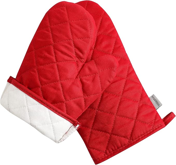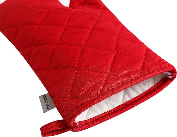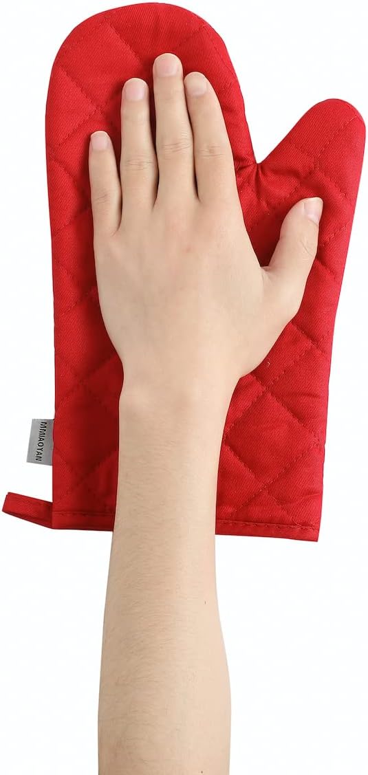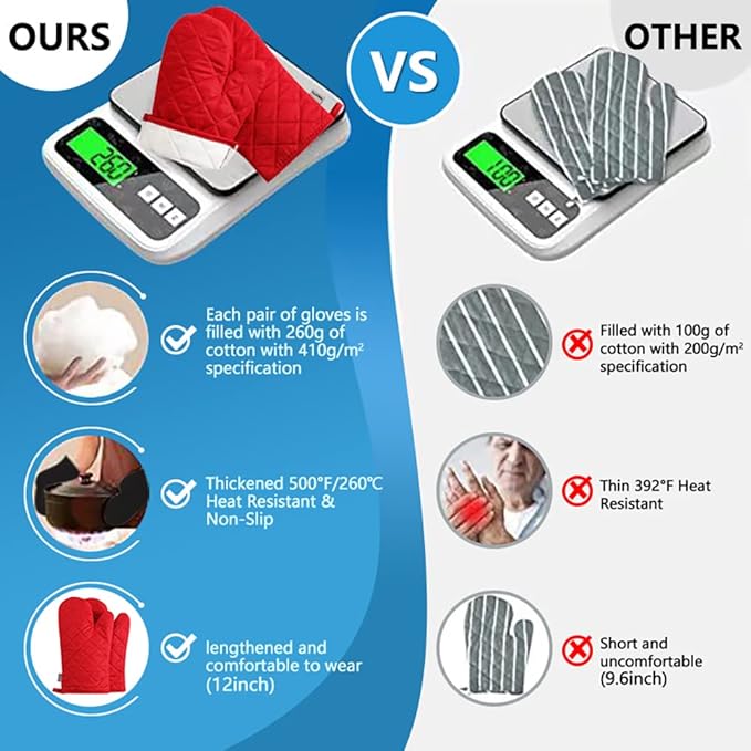 Oven Mitts and Pot Holders 4 pcs Set,High Heat Resistant 500 Degree Extra Thicken Long Kitchen Cotton Oven Glove for Cooking (12 Inch,Red)