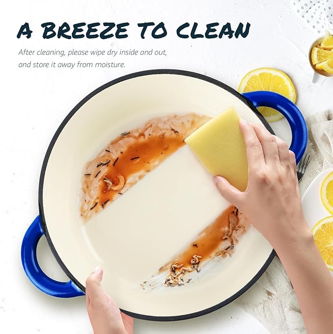 Overmont Enameled Cast Iron Dutch Oven - 5.5QT Pot with Lid Cookbook & Cotton Potholders - Heavy-Duty Cookware for Braising, Stews, Roasting, Bread Baking blue