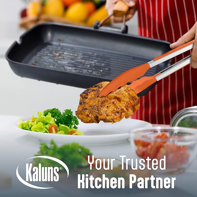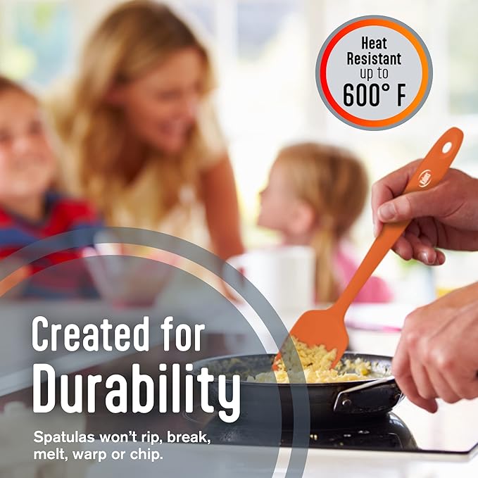 Kaluns Silicone Spatula Set, 4 Rubber Spatulas 600°F Heat Resistant, Nonstick Seamless Design with Stainless Steel Core, Dishwasher Safe, BPA free, Bonus Tongs Included