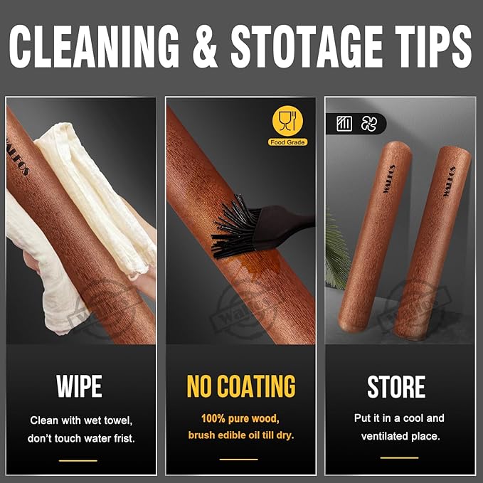 About This 【NATURAL WOOD】 - Walfos natural mini french rolling pin set is made of premium sapele hard wood without... Read more