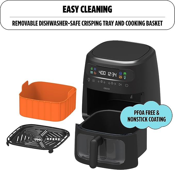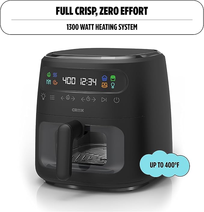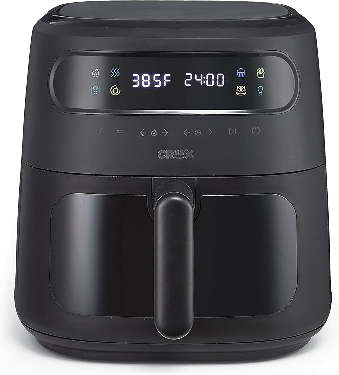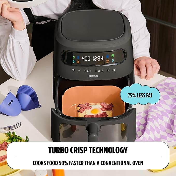 CRUX x Marshmello 8.0 QT Digital Air Fryer with TurboCrisp Technology, Touch Screen Temperature Control, Timer and Auto Shut-off, Fully Programmable, Silicone Liner Included, Black