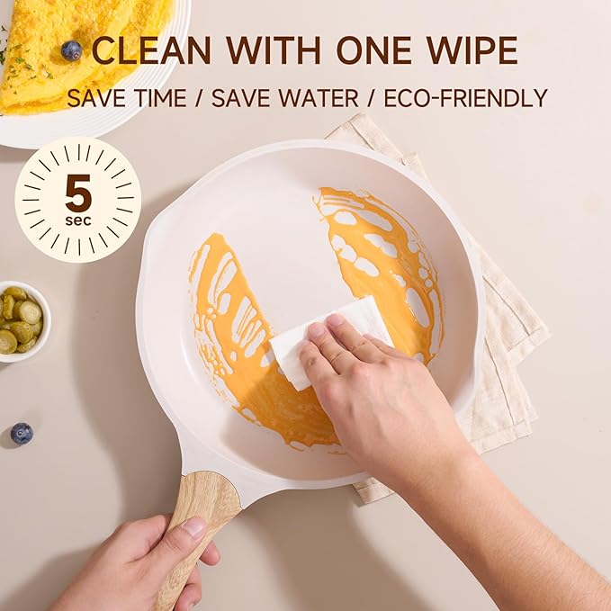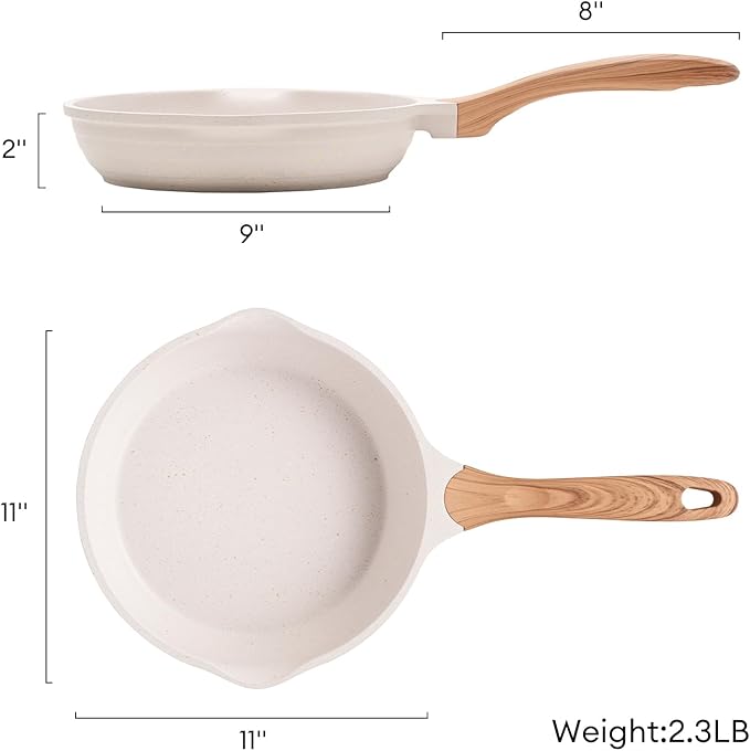 JEETEE 11 Inch Nonstick Frying Pan, Stone Coating Cookware, Nonstick Omelette Pan with Heat-Resistant Handle, Compatible with All Stoves (Beige)