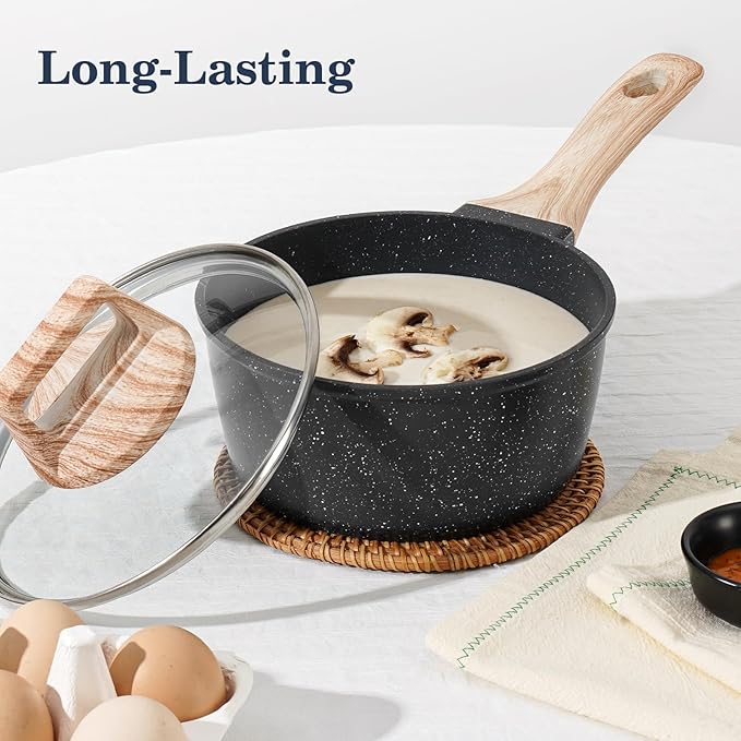 12 Pcs Pots and Pans Set, Nonstick Cookware Sets Black Granite Induction Cookware, Non-toxic Healthy Non Stick Kitchen Cooking Set with Frying Pans Set, Saucepans,Steamer (PFAS, PFOA, PFOS Free)