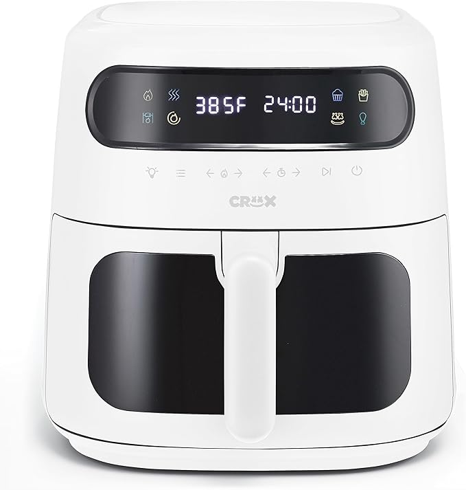 CRUX x Marshmello 8.0 QT Digital Air Fryer with TurboCrisp Technology, Touch Screen Temperature Control, Timer and Auto Shut-off, Fully Programmable, White