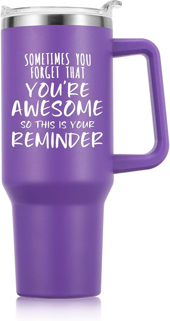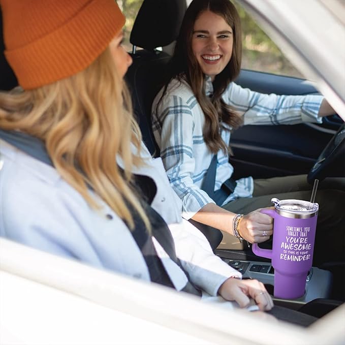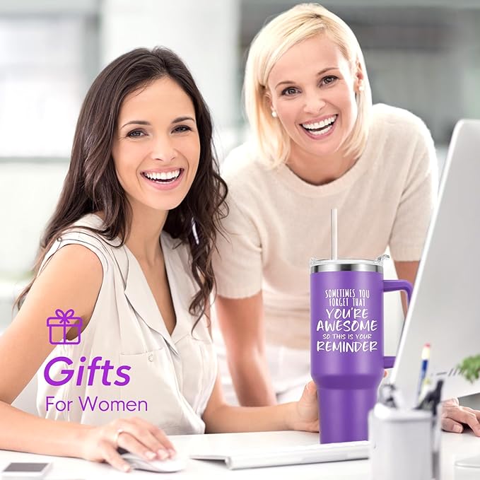 NOWWISH Gifts for Women, Sometimes You Forget You're Awesome 40 oz Tumbler with Handle and Straw, Birthday Gifts for Her Mom Wife Girlfriend and Sister - Purple
