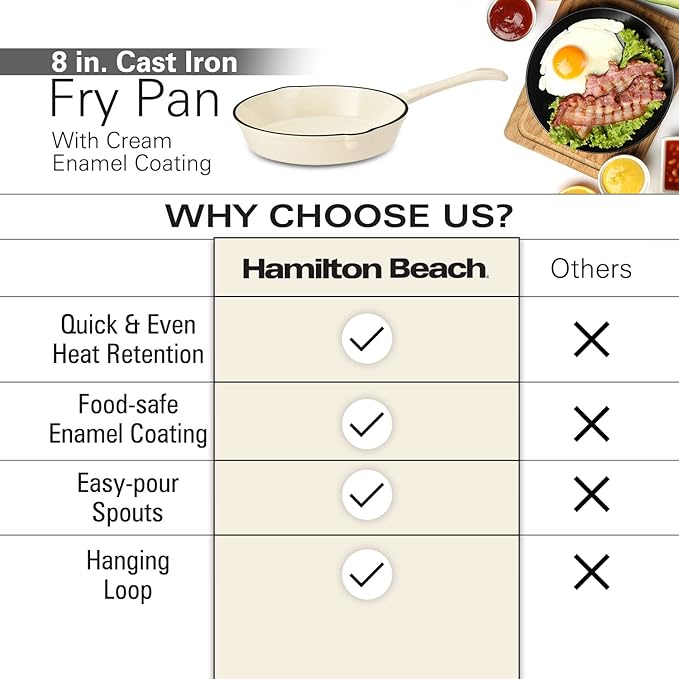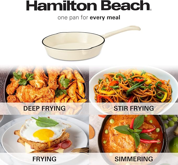 About This CAST IRON FRY PAN: The Hamilton Beach Fry Pan is made of high-quality cast iron and cream enamel... Read more