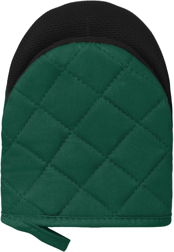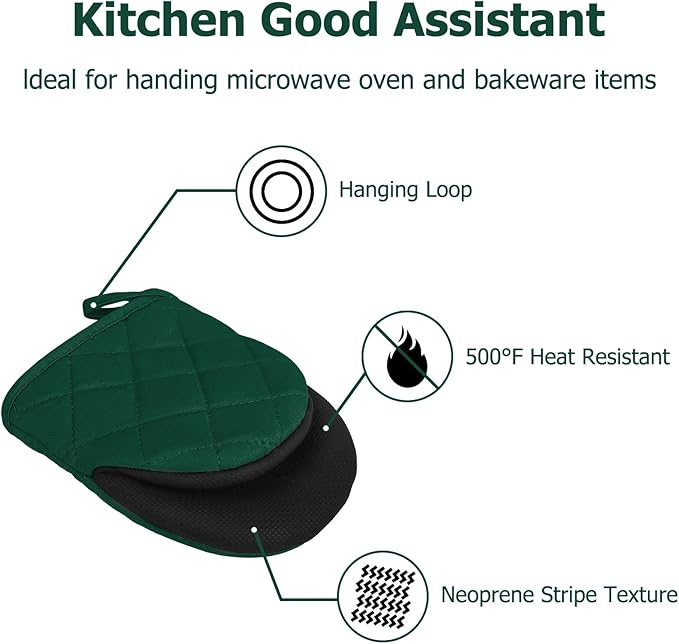 1 Pair Short Oven Mitts, Heat Resistant Silicone Kitchen Mini Oven Mitts for 500 Degrees, Non-Slip Grip Surfaces and Hanging Loop Gloves, Baking Grilling Barbecue Microwave Machine Washable