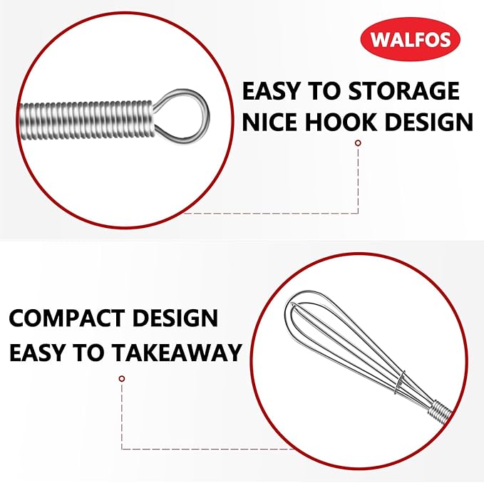 Walfos Mini Whisks, Small Whisk Bulk 304 Stainless Steel 6 Pieces, 5 Inch Tiny Whisk For Whisking, Beating Eggs, Mixing Sauces, Blending Ingredients