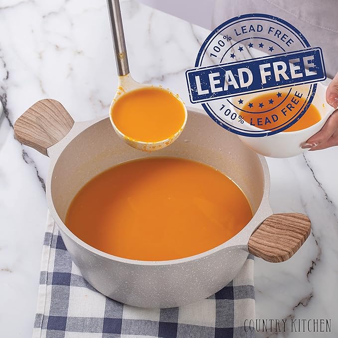 Country Kitchen Non-Stick Cast Aluminum Cookware Set - Durable Kitchen Cookware for Everyday Cooking, Cream, 13 Pc.