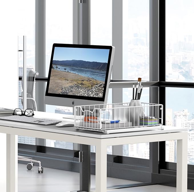 Simple Houseware Pull-Out Cabinet Sliding Basket Organizer, 17.2" D x 9.7" W x 5" H – White, Ideal for Kitchen and Bathroom Cabinet Storage, Under Sink or Pantry Organization
