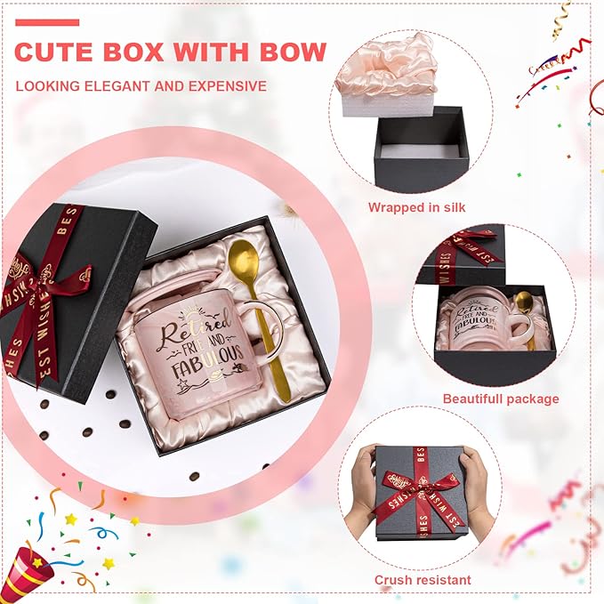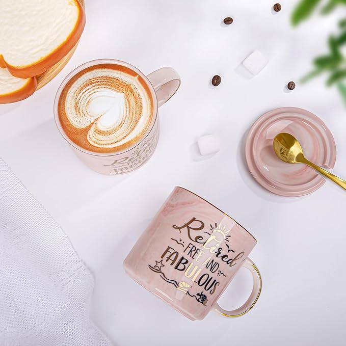 Retirement Gift for Woman 2025 - Retirement Gifts for Women, Coworker Leaving, Farewell, Going Away, Goodbye Gifts, Retired Free And Fabulous -14oz Pink Marble Coffee Mug, Gift Box